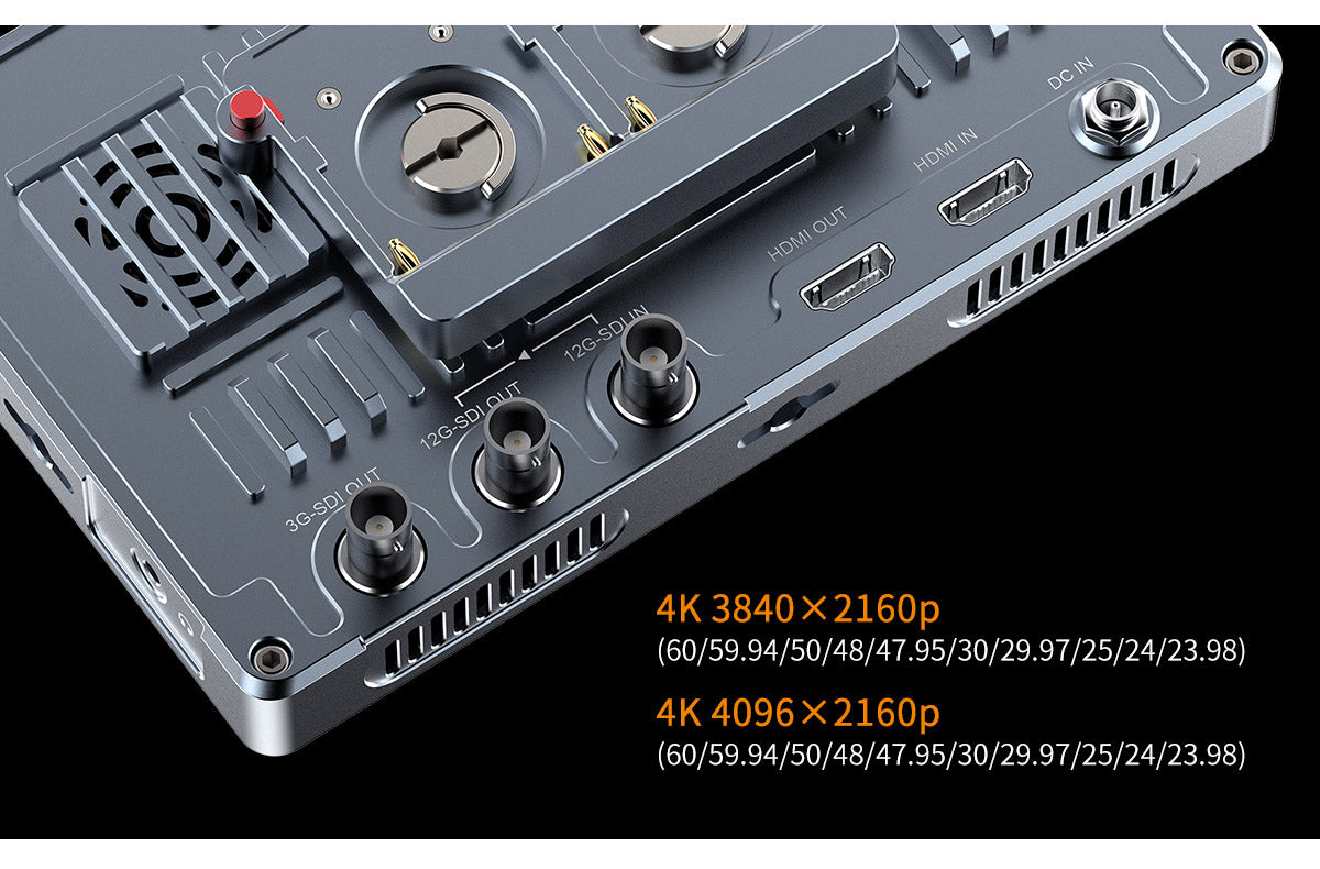 Equipped with 12G-SDI and 4K HDMI inputs and outputs, supports up to 4096x2160/60p &3840x2160/60p signal, compatible with professional camcorders and the latest DSLR cameras on the market. In addition, S7 also comes with a 3G-SDI output and provides a 3.5mm headphone jack to monitor audio.