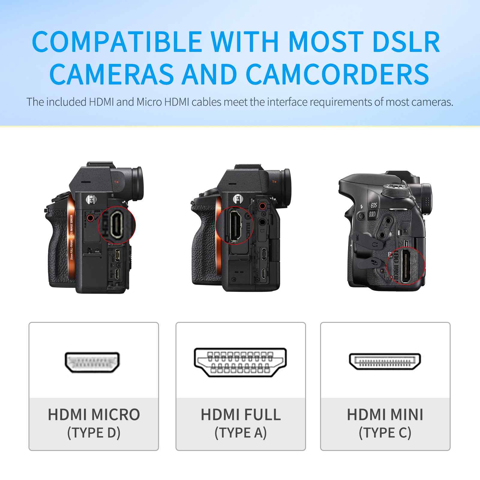 The T6 On-Camera 4K HDMI Monitor features a 1920 x 1080 resolution display with a maximum brightness of 450 cd/m². It supports HDMI input signals with resolutions up to DCI/UHD 4K60 and provides an HDMI output for connecting to wireless transmitters, larger on-set monitors, and other devices.