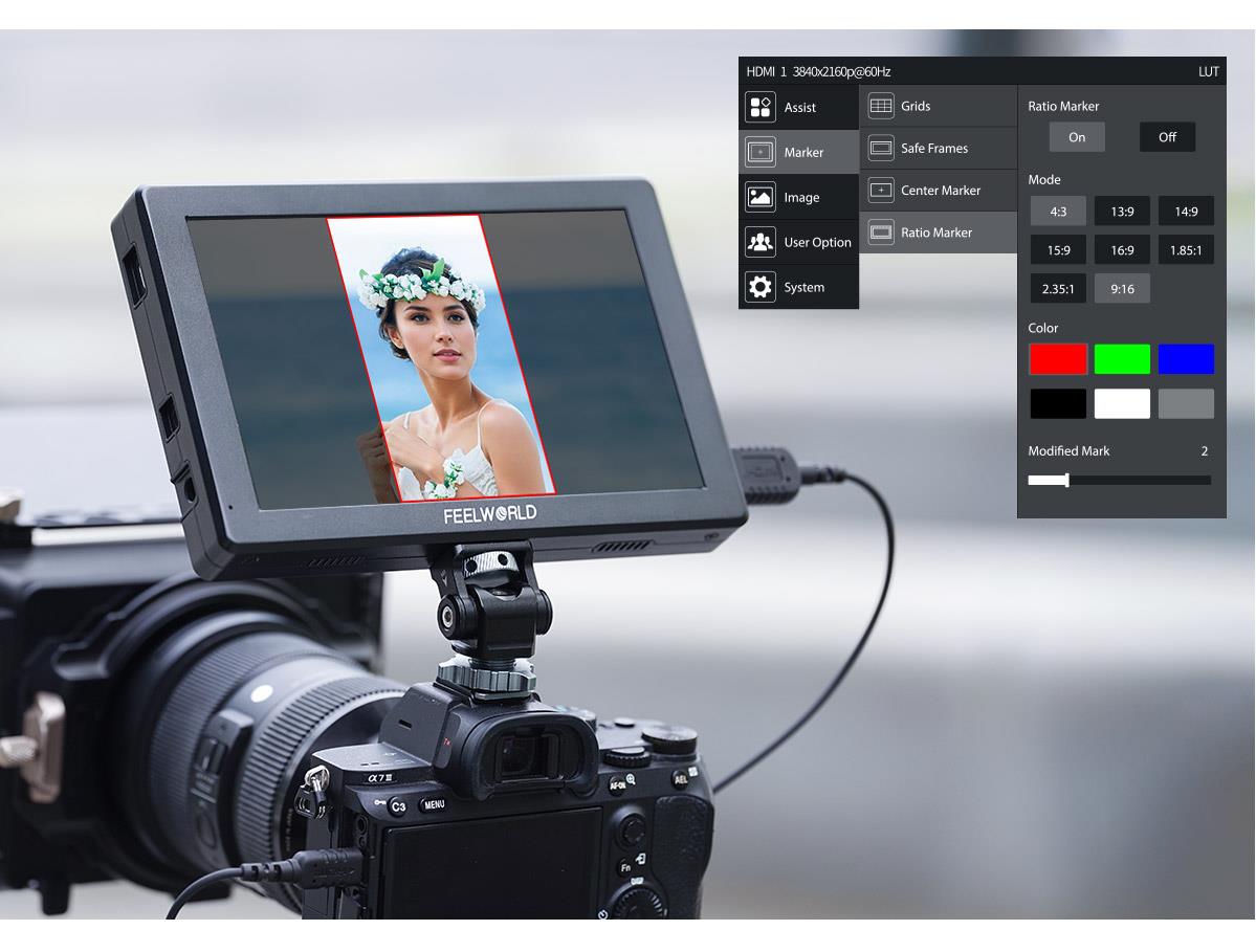 T7S PRO has many kinds of ratio markers, especially the vertical screen marker 9:16. Perfect for vertical screen platforms such as TikTok, Instagram.