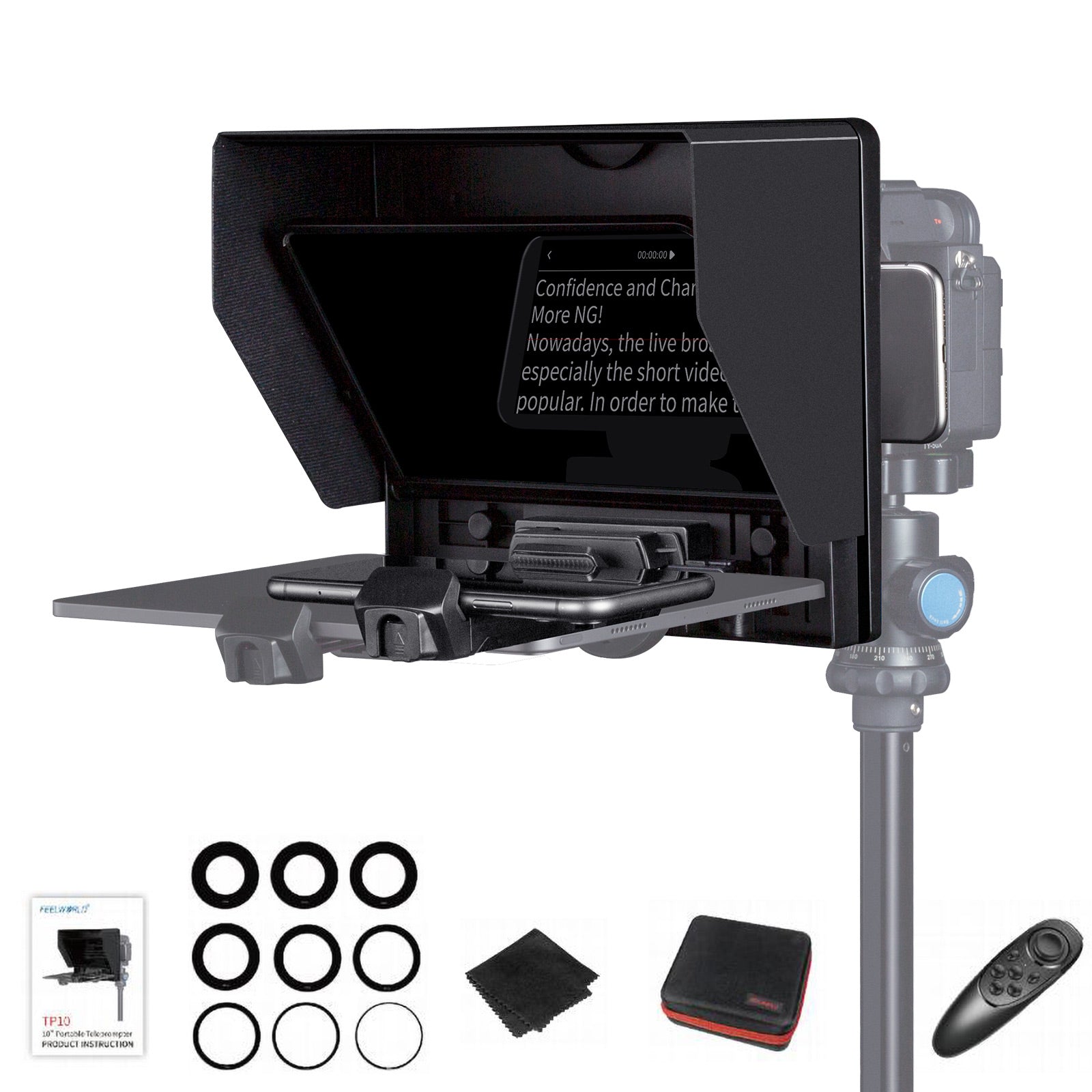 FEELWORLD TP10 Portable 10" Folding Teleprompter Up 11" Phone Tablet Prompter for Phone DSLR Shoot