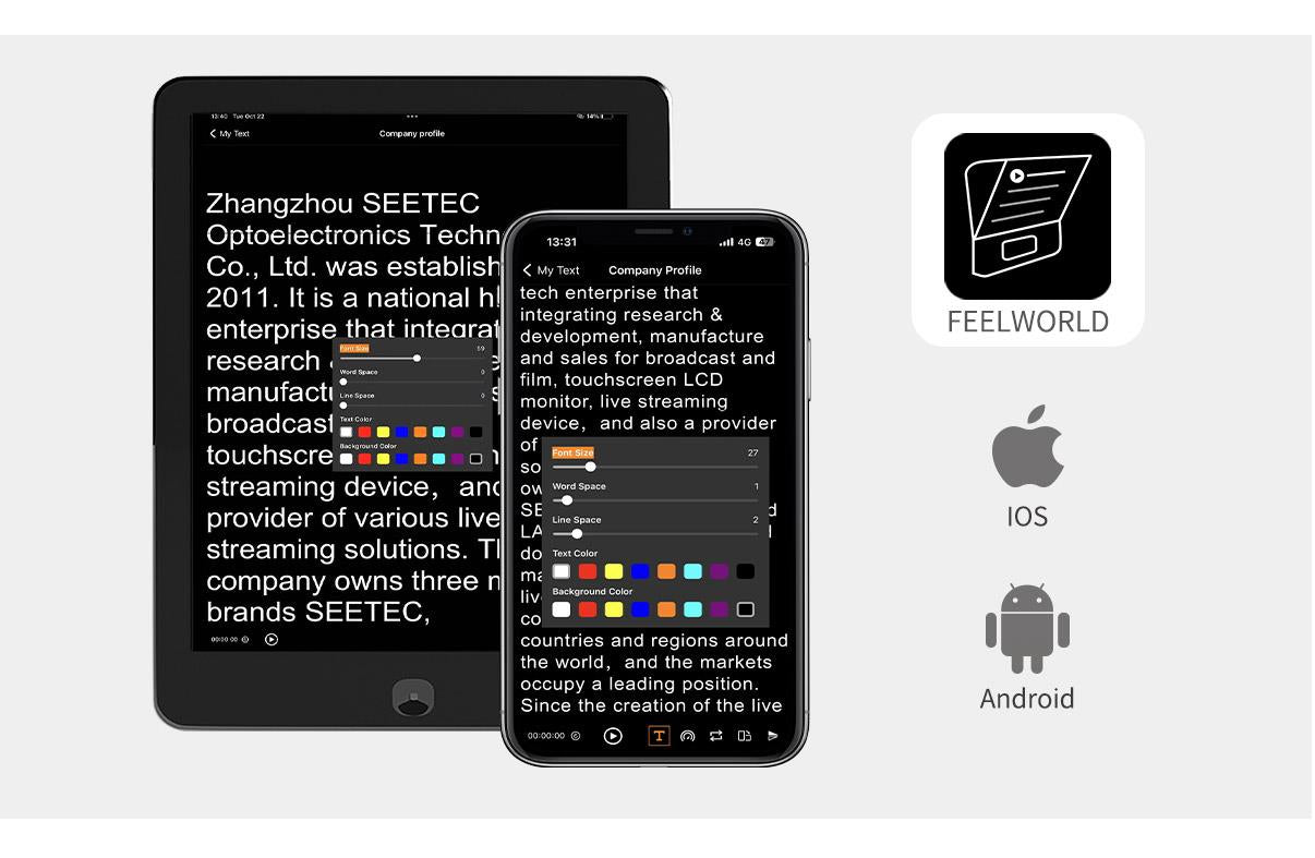 The teleprompter app is compatible with iOS & Android systems, suitable for phone and tablet installation.
