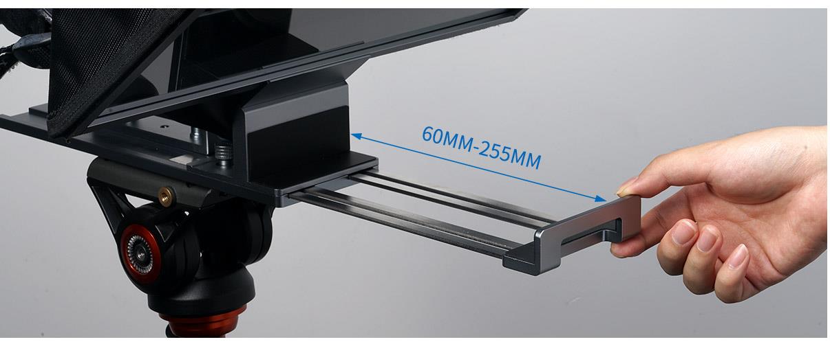 TP16 adopts telescoping prompting device clamp with a maximum extension distance of 255mm and supports up to 16 inches of prompting devices.